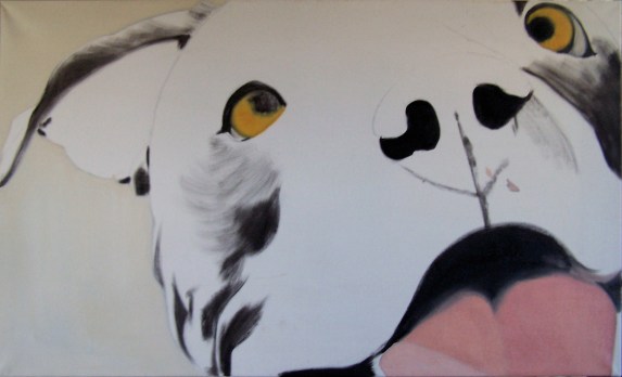 Blue is looking more like a character out of a children’s book, and I can’t help but notice the way that each of the dogs have been represented so differently, in style and technique and all. In working from my subconscious (as I know we do), I find it interesting that Blue the Pit Bull is a mushy children’s book character. I like that.