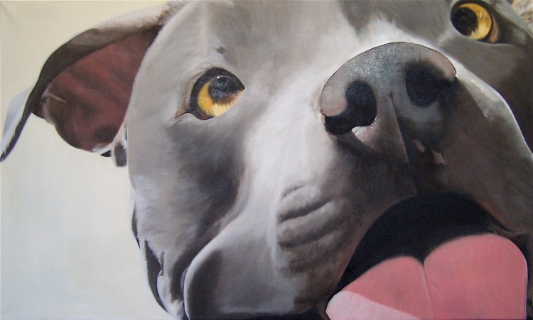 As I wrote when I first started Blue, he is a big, mushy explosion of joy. While I was painting him, I was hoping that that sense of joy would translate through the brush… through the paint. Based on the response I got, I think it did. Although there were portraits that I felt were as good or better, their expressions were more somber. Most people who contacted me talked about Blue, and it just goes to show that no matter how crazy we get, people are still drawn to joy. Thank you, Blue.