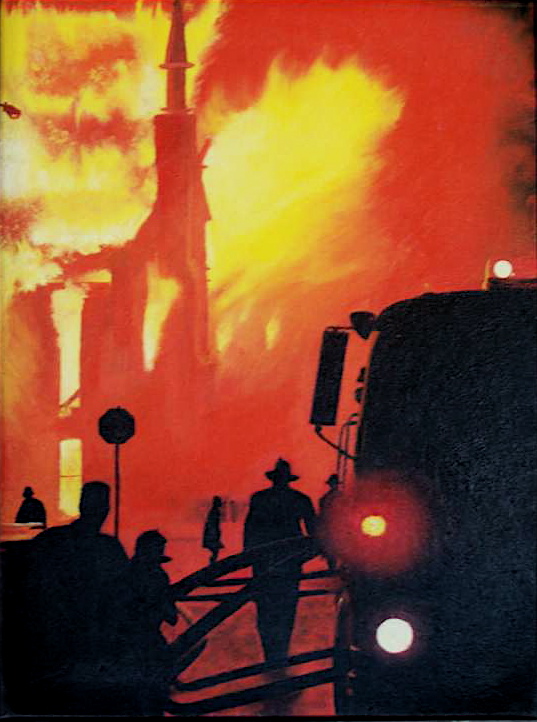 My father was probably my greatest supporter, as a painter. When I was a teenager, he asked me to paint a fire scene for him. He was a Deputy Fire Chief (eventually being a Chief, as did his own father), and he loved firefighting like nothing else. It was he who instilled in me the belief that you need to do what you love, and exemplified that ideal. I do regret that it took me so long to find the courage to do it, myself, and I wish that he could have seen my work exhibited in the cafe.