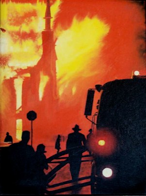 I did finish it, finally. Even if it was truly horrible, he still would have thought that it was a great painting. He had it framed and hung it in his office at the Fire Academy. In his later years, he kept it in his man-room at home. Now, visiting my mother on weekends, his room is so empty. But the painting glares out at me.