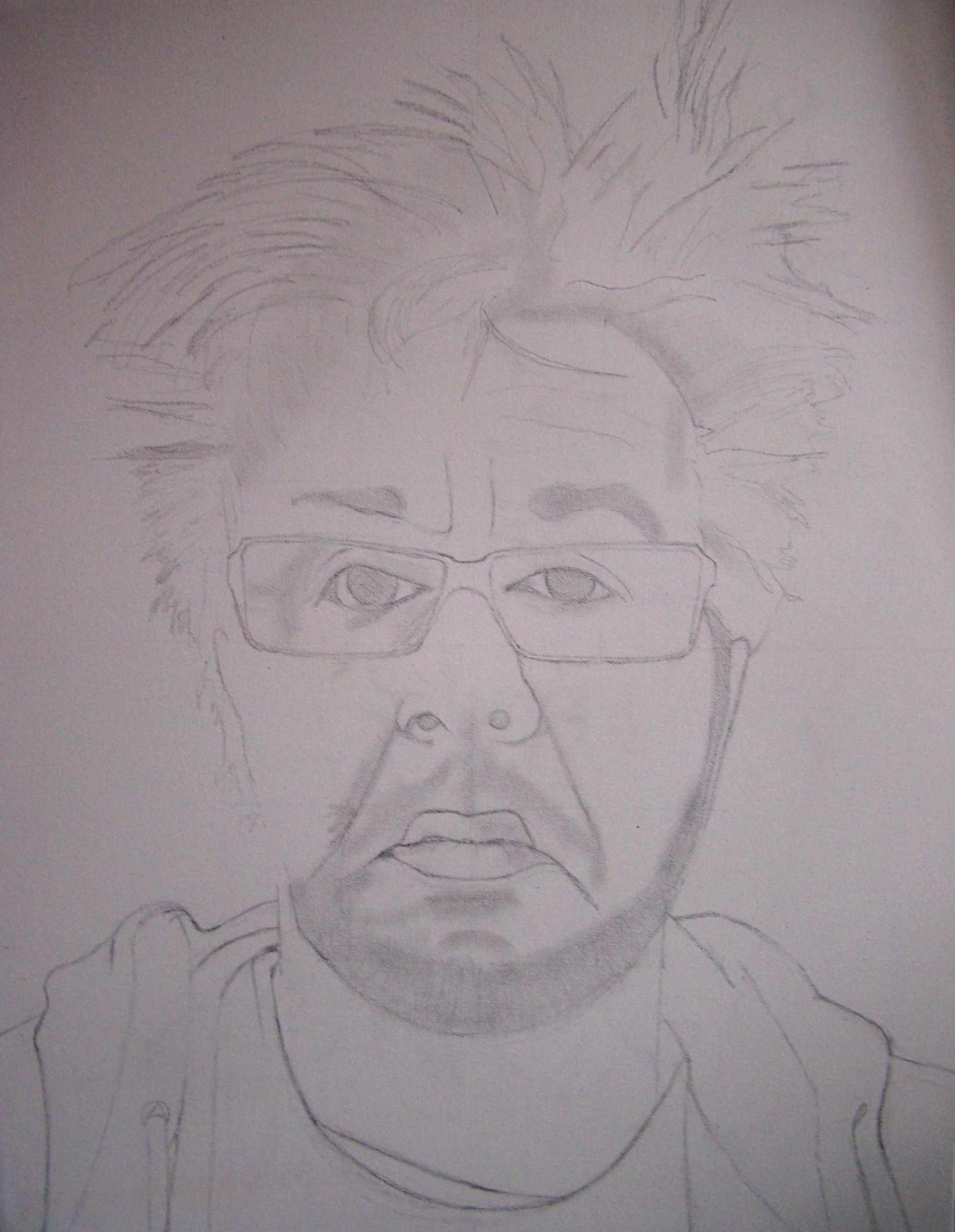There were two things that I was trying to capture in this portrait: (1) the truly epic proportions of Matt’s bed head, and (2) his facial expression – which combines a sleepy acquiescence to it, and the laissez-faire, self-deprecating seriousness with which he stands there, displaying it in all its glory. To me, that is what made it so funny.